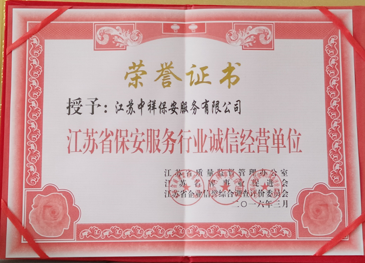 中祥公司于江蘇省公安廳,南京市公安局正式批準(zhǔn)注冊(cè)成立,是江蘇省、南京市保安協(xié)會(huì)會(huì)員單位,中國(guó)保安協(xié)會(huì)常務(wù)理事單位;中祥人不斷努力,目前已發(fā)展成蘇皖滬地區(qū)具有實(shí)力的保安公司,擁有業(yè)內(nèi)精英級(jí)保安2000多名,高端固定客戶(hù)100余家。